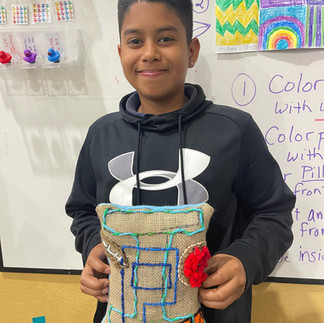 En el estudio: Los alumnos de arte de Leslyn Rushing , en la clase de primaria superior, dominaron las intrincadas técnicas de costura y bordado , creando hermosas obras hechas a mano.